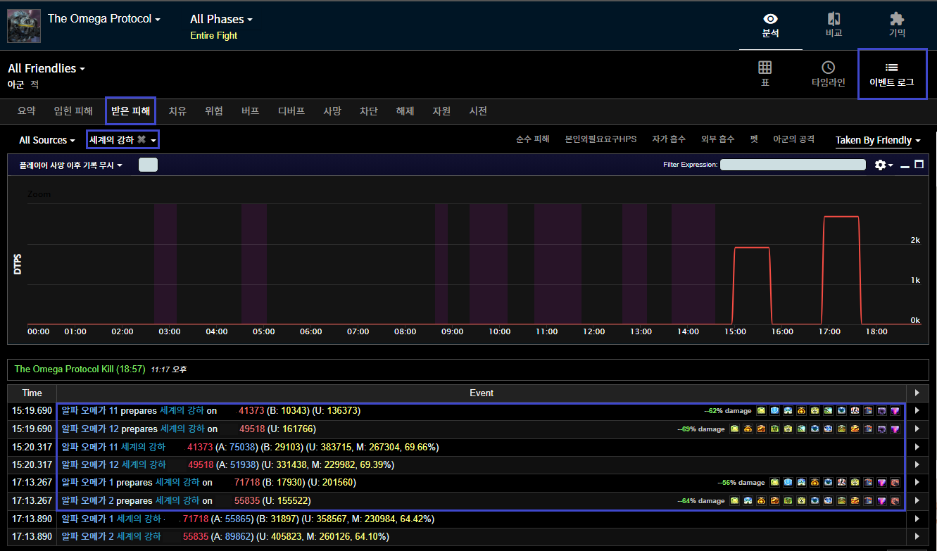 평타 구간에 메인 탱커님이 아팠던 로그를 확인해봅시다. 힐러님의 케어도 원인이겠지만, 다른 원인은 없었을까요?