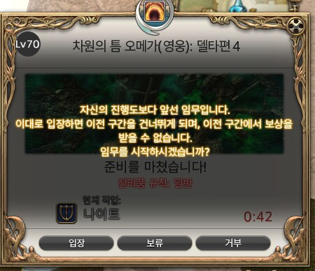 참가 조건에 맞지 않는 파티원이 있을 경우, 입장이 시스템상으로 거부 됩니다.