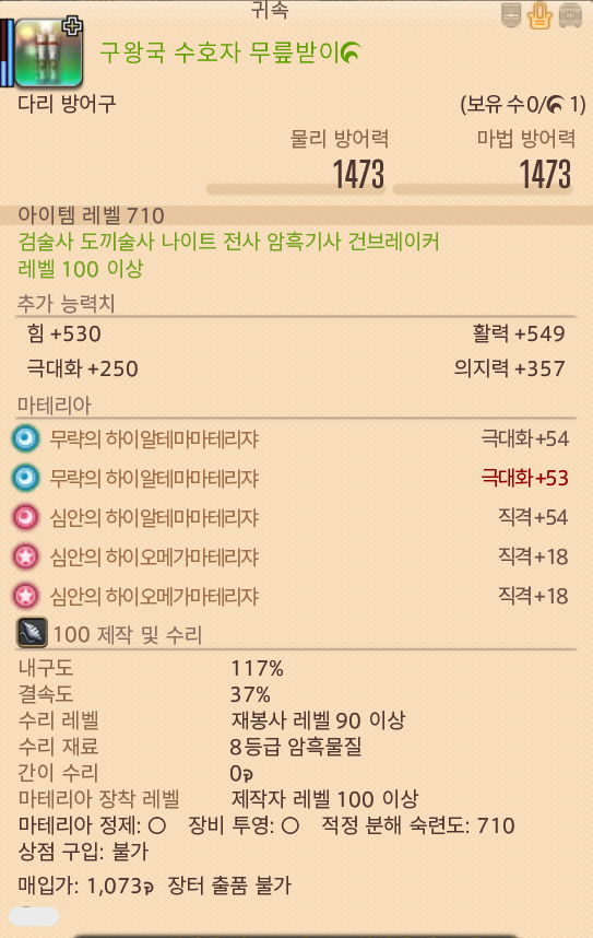 ※ 제작 장비일 경우 NQ와 HQ일 때 스탯 차이가 있습니다. HQ 장비로 준비해주세요.