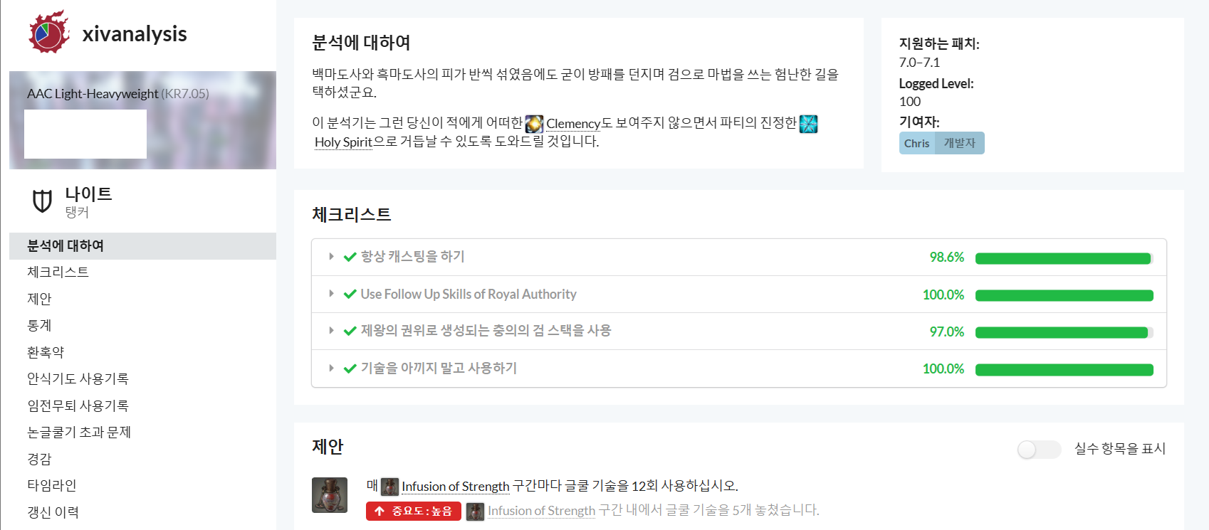 - 위의 xivanalysis 사이트에 접속하여, 복사한 주소 페이지를 검색창에 붙여넣습니다.