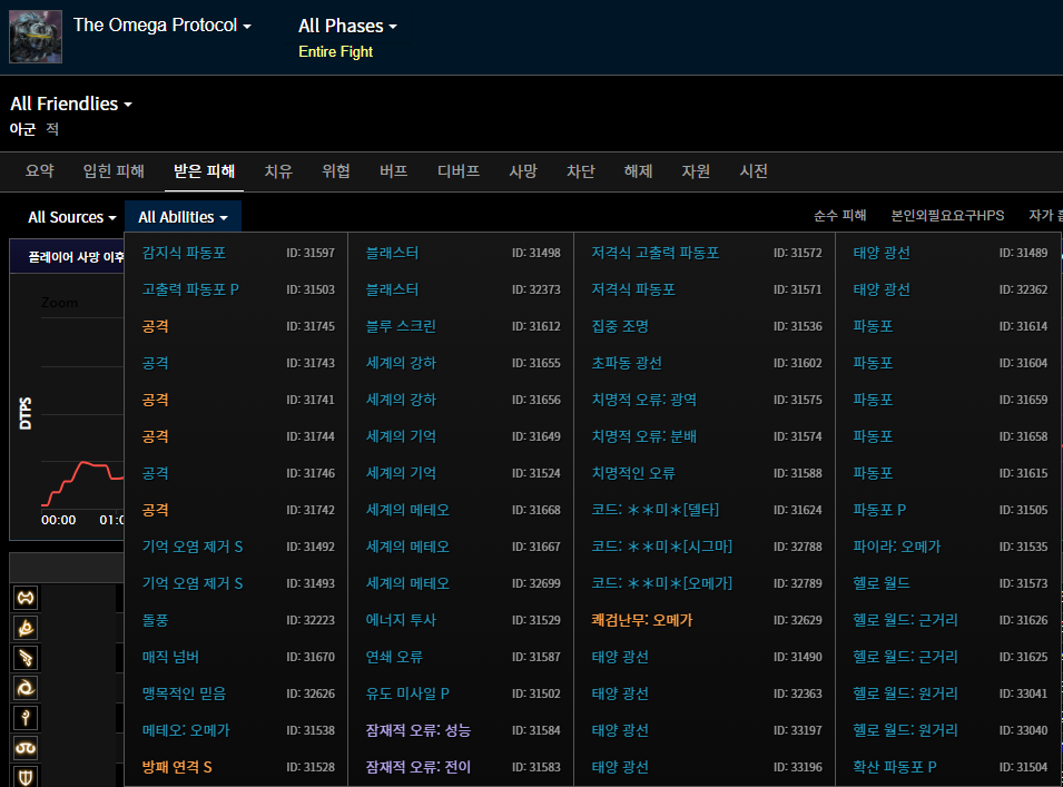 받은 피해 탭에서 All Abilities를 선택해봅시다. 몹이 사용한 모든 스킬을 확인할 수 있습니다.
